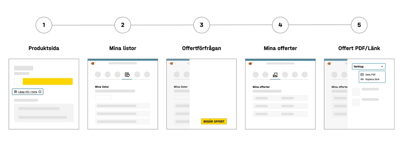 För oss är det viktigt att du som kund ska kunna begära en offert på ett smidigt sätt. Nu gör vi det enklare genom möjligheten att skapa en offertförfrågan online och helt utan hjälp av våra säljare. Med digitala offertförfrågningar får du mer flexibilitet: Begär en offert i lugn och ro, oavsett tid på dagen. Du har tillgång till alla dina offerter var du än är och har dem samlade på ett och samma ställe. Tjänsten är dessutom helt kostnadsfri!